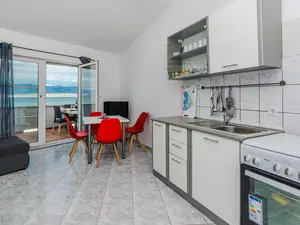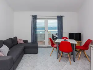 Diese Wohnung im Ersten Stock ist ideal für 4-5 Personen. Befindet sich direkt am Strand in einer ruhigen Lage der Insel Vir namens Slatina.Das Apartment ist aufgeteilt in ein Wohnzimmer, Küche mit Esszimmer, zwei Schlafzimmern (eines mit Doppelbett und eines mit zwei Einzelbetten) und ein Badezimmer mit Dusche. Das Wohnzimmer hat ein Schlafsofa für ein Person. Zur Wohnung gehört eine 15 m² große Balkon mit Liegestühlen, Tisch und Stühlen.