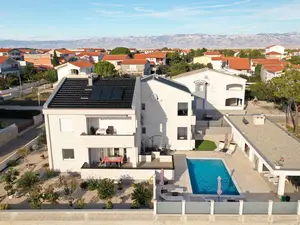 Diese Ferienwohnung mit Pool und Meerblick ideal für 2 - 4 Personen befindet sich in einer ruhigen Gegend der Insel Vir nur 200 m vom den Kiesstrand Kozjak entfernt.Die 60 m² Wohnung im ersten Stock des Hauses teilt sich auf einen Wohn- und Essbereich mit komplett ausgestatteter Küche, ein Doppelzimmer mit Doppelbett und ein Badezimmer mit Dusche. Im Wohnzimmer befindet sich ein Schlafsofa für zwei weitere Personen. Vom Wohnbereich aus erreichen Sie auf einen möblierten Balkon mit Meerblick und Blick aufs Pool . Klimaanlage, WLAN im Appartement und auf dem Anwesen, Geschirrspüler, Espressomaschine und Parkplatz auf dem Grundstück sind nur einige der Annehmlichkeiten dieser Wohnung und im Preis inbegriffen. Kinderbett und Kinderhochstuhl auf Anfrage und ohne Aufpreis. Im geschlossenen Innenhof des Hauses befindet sich ein 32m² Pool (8 m lang, 4 m breit, 1,5 m tief) mit Liegestühlen, Sonnenschirmen, Außendusche und Toilette sowie ein geräumiger überdachter Pavillon mit Grill und Sitzgarnitur. Restaurants und Shops erreichen Sie in wenigen Gehminuten. Das Zentrum der Insel Vir ist 2000 m entfernt.
