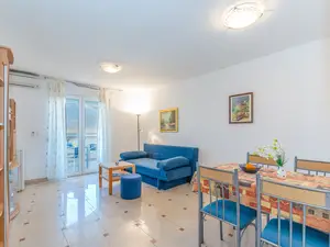Ferienwohnung für 2-4 Personen mit Meerblick befindet sich im 1. Etage des Hauses, in eine ruhige Gegend der Insel Vir-BobovikDie Wohnung ist aufgeteilt in ein Wohnzimmer mit Küche und Esszimmer, Schlafzimmer mit Doppelbett und Badezimmer mit Dusche. Im Wohnzimmer befindet sich ein Schlafsofa für zwei weitere Personen. Von Wohnzimmer aus gelangt man auf eine möblierte und überdachte 8 m² Balkon. Zu den weiteren Annehmlichkeiten gehören Klimaanlage, SAT TV, WLAN. Kinderbett auf Anfrage. Eine gemeinsame Lounge befindet sich im Keller des Hauses die umfasst eine Bar, Sitzplätze, Darts, SAT TV, Radio, Klimaanlage und Kühlschrank mit Gefrierfach. Hinter dem Haus gibt es einen Parkplatz für Fahrräder. Im Innenhof des Hauses befindet sich ein Pavillon mit Grill und Gartenmöbeln, ideal für Versammlungen in warmen Sommerabenden. Die Wohnung befindet sich in einer Entfernung von 70 m vom Meer und 150 m von Shops und Restaurants. Haustiere sind gegen einen Aufpreis von 15 EUR pro Tier und Nacht willkommen.