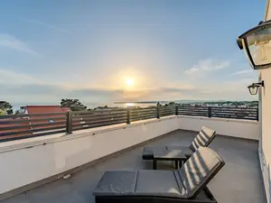 Dieses Apartment im ersten Stock ist ideal für 4-6 Personen. Es befindet sich in einer ruhigen Lage der Insel Vir namens Miljkovica.Das Apartment (85 m²) ist aufgeteilt in ein Wohnzimmer mit Essbereich, voll ausgestattete Küche, zwei klimatisiert Schlafzimmern (eines mit Doppelbett und eines mit zwei Einzelbetten), ein Badezimmer mit Dusche sowie eine zusätzliche Toilette. Das Apartment verfügt über drei überdachte Balkone mit jeweils 10 m². Zwei der Balkone sind vom Wohnzimmer aus zugänglich und mit einem Grill, Tisch und Stühlen ausgestattet, während der dritte Balkon zum Schlafzimmer gehört und mit Liegestühlen ausgestattet ist. Zu dem Apartment gehört eine eigene Dachterrasse (51 m²) mit Meerblick, Whirlpool und Liegen.