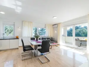 Dieses luxuriöses, modern ausgestattete & neu angerichtete 4-Sterne 75 m2 Urlaubdomizil für 2-4 Personen im 1. Etage des Hauses teilt sich auf zwei Schlafzimmern mit Doppelbett, ein Badezimmer mit Dusche sowie einen Ess- & Wohnbereich mit komplett ausgestatteter Küche auf.15m2 überdachter möblierter Balkon, Geschirrspülmaschine, Waschmaschine, Klima, Sat-TV und Internetzugang per WLAN zählen zu den weiteren Ausstattungsmerkmalen. Im Außenbereich steht Ihnen und allen Gästen ein Grill. Der nächste Badestrand ist nur 200m vom Anwesen entfernt. Dieser beliebter Kieselstrand Jadro liegt auf einer Promenade entlang der Küste. Ideal für entspannende Abendspaziergänge.