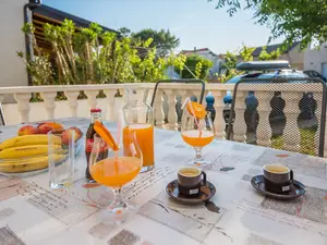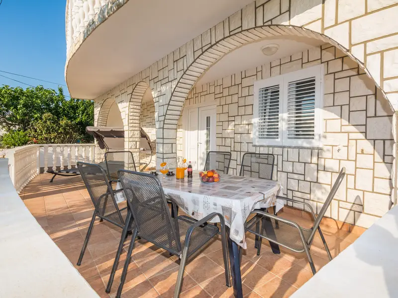 Diese geräumige Wohnung im Erdgeschoss befindet sich in einem ruhigen Teil der Insel Vir namens Lučica und ist ideal für 7 Personen.Das Apartment besteht aus einem Wohnzimmer, einer voll ausgestatteten Küche mit Esszimmer, zwei Schlafzimmern mit Doppelbetten, einem Schlafzimmer mit zwei Einzelbetten, einem Schlafzimmer mit einem Einzelbett für eine Person und zwei Badezimmern mit Dusche. Zum Apartment gehört eine 25 m² große, überdachte Terrasse mit Tisch, Stühlen und Liegestühlen.