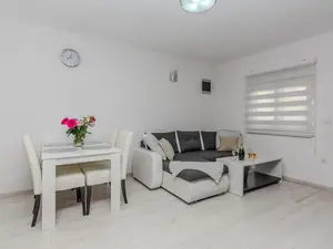 Diese Ferienwohnung für 4-6 Personen befindet sich im Gebiet namens Lučica auf der Insel Vir.Luxuriöse und modern eingerichtete 52m2 Wohnung im Erdgeschoß des Hauses teilt sich auf einem Wohnzimmer, Esszimmer, gut ausgestattete Küche, zwei Schlafzimmern mit Doppelbett und ein Badezimmer mit Dusche und Toilette. Im Wohnzimmer befindet sich ein Schlafsofa für zwei weitere Personen. Vom Wohnzimmer aus erreichen Sie eine 13m2 Terrasse, ausgestattet mit Tisch und Stühlen, ideal für gemeinsames Frühstück oder Abendessen. Klimaanlage, Sat-TV, Internetzugang und Parkplätze sind ebenfalls vorhanden und ohne Aufpreis. Der nächste Strand ist nur 30 Meter vom Haus entfernt, wo Sie Sonnenbaden, Schwimmen oder Tauchen in den erfrischenden Meer können.