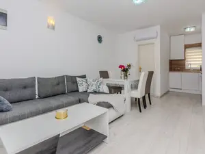 Diese Ferienwohnung für 4-6 Personen befindet sich im Gebiet namens Lučica auf der Insel Vir.Luxuriöse und modern eingerichtete 52m2 Wohnung im Erdgeschoß des Hauses teilt sich auf einem Wohnzimmer, Esszimmer, gut ausgestattete Küche, zwei Schlafzimmern mit Doppelbett und ein Badezimmer mit Dusche und Toilette. Im Wohnzimmer befindet sich ein Schlafsofa für zwei weitere Personen. Vom Wohnzimmer aus erreichen Sie eine 13m2 Terrasse, ausgestattet mit Tisch und Stühlen, ideal für gemeinsames Frühstück oder Abendessen. Klimaanlage, Sat-TV, Internetzugang und Parkplätze sind ebenfalls vorhanden und ohne Aufpreis. Der nächste Strand ist nur 30 Meter vom Haus entfernt, wo Sie Sonnenbaden, Schwimmen oder Tauchen in den erfrischenden Meer können.