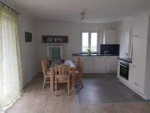 Die großzügige Wohnküche bietet alles, was Sie für einen angenehmen Aufenthalt benötigen: Elektroherd, Backofen, Kaffeemaschine, Toaster, Eierkocher, Wasserkocher und Bügeleisen stehen Ihnen ebenso zur Verfügung wie eine gemütliche Sitzecke mit Flachbildfernseher. Dank Fußbodenheizung genießen Sie zu jeder Jahreszeit behaglichen Komfort.
