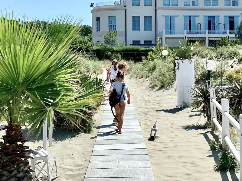 Du wohnst direkt am Meer – an einem Ort, der ein Stück italienischer Geschichte geschrieben hat! Das Hauptgebäude, dessen Grundriss einem Flugzeug ähnelt, das zur Küste zeigt, war einst die Sommerkolonie "Principi Umberto e Maria Josè di Piemonte". Es wurde um 1930 als Feriendomizil für die Kinder des damaligen Personals der italienischen Luftwaffe erbaut.