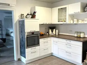 - Zwei elegante Schlafzimmer mit komfortablen Polsterbetten, eines davon elektrisch verstellbar.