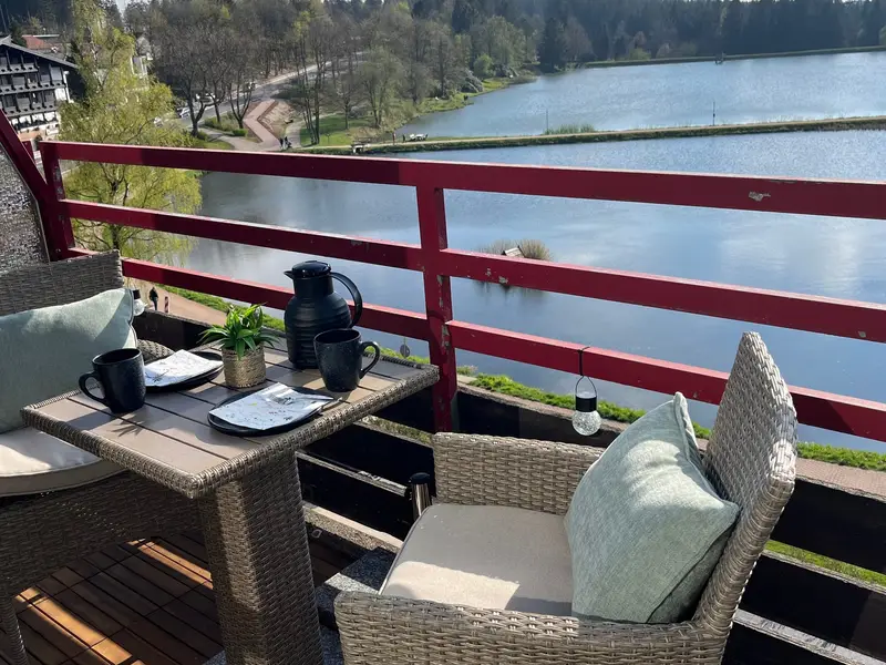 - Panoramablick: Genießen Sie vom privaten Balkon aus einen weiten Blick über den glitzernden See und die umliegenden Wälder. Ein Anblick, der zu jeder Tageszeit verzaubert.