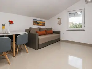 Diese neu eingerichtete Wohnung befindet sich in einer ruhigen Lage der Insel Vir, nur 70 m vom Strand Soldatica entfernt.Moderne Wohnung für 2-4 Personen befindet sich im Erste Stock des Hauses und teilt sich auf ein Wohnzimmer und Esszimmer mit Küche, ein Schlafzimmer mit Doppelbett und Badezimmer mit Dusche. Im Wohnzimmer gibt es ein Schlafsofa für zwei weitere Personen. Die Wohnung verfügt über einen möblierten Balkon, die ideal zum Genießen mit Familie und Freunde ist. Voll ausgestattete Küche mit Geschirrspüler, Klimaanlage, WLAN Internet Zugang, Grill und Parkplatz im Innenhof zählen zu den weiteren Merkmalen dieser Wohnung. Nur 70m entfernt befindet einen Kiesstrand mit Betonierte Liegenflächen Soldatica.