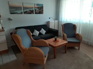 Komf. FeWo bestehend aus:1 Schlafraum, 1 komb. Wohn/Schlafraum, Küchenzeile mit Essecke, verglaster Vorbau mit Sitzecke, Balkon, Bad/Dusche,PKW - Stellplatz,