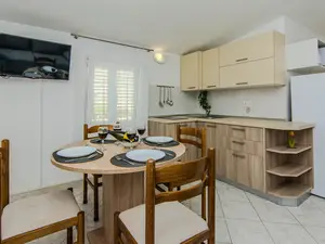 Dieses geräumige Apartment im ersten Stock befindet sich in einem ruhigen Teil der Stadt Nin und ist ideal für 2-3 Personen.Das Apartment ist aufgeteilt in ein Wohnzimmer mit Küche und Esszimmer, ein Schlafzimmer mit Doppelbett und ein Badezimmer mit Dusche. Das Wohnzimmer hat ein Schlafsofa für ein weitere Person. Zu dem Apartment gehört ein überdachter Balkon (5 m²) mit Tisch und Stühlen.