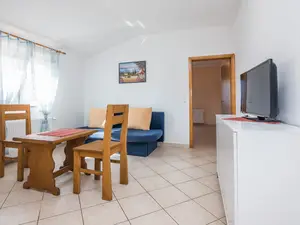 Diese Wohnung befindet sich in einer ruhigen Gegend der Insel Vir namens Virić.Die Unterkunft ist nur etwa 300m vom Kieselstrand entfernt und bietet Platz für 2-4 Personen. Die 45 m2 Fewo liegt im ersten Stock des Hauses und teilt sich auf in ein Wohnbereich mit Küche, ein Schlafzimmer mit Doppelbett und ein Badezimmer mit Dusche und Toilette. Im Wohnzimmer befindet sich ein Schlafsofa für zwei weitere Personen. Zu dem Apartment gehören zwei 10m2 gemeinsame Balkone, ausgestattet mit Tisch und Stühlen. Klimaanlage, Internetzugang, Sat-TV, Grill, Parkplatz auf dem Grundstück sowie Bettwäsche und Handtücher sind unter anderen vorhanden und kostenlos.