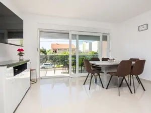 Dieses geräumige Apartment im ersten Stock befindet sich im Zentrum der Insel Vir und ist ideal für die Unterbringung von 6-8 Personen.Das 90 m² große Apartment ist aufgeteilt in einen Wohnraum mit voll ausgestatteter Küche und Essbereich, zwei Schlafzimmern mit Doppelbetten, ein Schlafzimmer mit zwei Einzelbetten, ein Badezimmer mit Badewanne und ein zusätzliches WC. Das Wohnzimmer hat ein Schlafsofa für zwei weitere Personen. Jedes Schlafzimmer ist mit SAT-TV ausgestattet. Zu dem Apartment gehört ein überdachter Balkon ausgestattet mit Tisch und Stühlen. Das Apartment verfügt außerdem über einen zweiten Balkon (4 m²) ausgestattet mit Tisch und Stühlen.