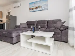 In ruhiger Lage namens Radovanjica befindet sich dieses moderne Appartement, nur 150 m vom Kieselstrand entfernt, und bietet Platz für bis zu 6 Personen.Die 62 m² Unterkunft in der 1. Etage des Hauses ist auf zwei Schlafzimmern (eine mit einem Doppelbett und eine mit zwei Einzelbetten), ein Badezimmer mit Dusche sowie einen Wohn- und Essbereich mit Küche aufgeteilt. Eine Schlafcouch für zwei weitere Personen befindet sich im Wohnraum. Eine gut ausgestattete Küche mit Geschirrspüler und Backofen, Klimaanlage, Sat-TV, Internetzugang per WLAN, Waschmaschine, Babybett und Hochstuhl zählen zu den weiteren Ausstattungsmerkmalen. Der 8 m² Balkon mit teilweisen Meerblick ist überdacht und möbliert. Im Innenhof sind Grill und Parkplatz verfügbar ohne Aufpreis. Restaurants, Einkaufsmöglichkeiten und das Zentrum der Insel erreichen Sie innerhalb weniger Gehminuten.