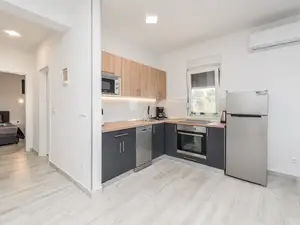 In ruhiger Lage namens Radovanjica befindet sich dieses moderne Appartement, nur 150 m vom Kieselstrand entfernt, und bietet Platz für bis zu 6 Personen.Die 62 m² Unterkunft in der 2. Etage des Hauses ist auf zwei Schlafzimmern (eine mit einem Doppelbett und eine mit zwei Einzelbetten), ein Badezimmer mit Dusche sowie einen Wohn- und Essbereich mit Küche aufgeteilt. Eine Schlafcouch für zwei weitere Personen befindet sich im Wohnraum. Eine gut ausgestattete Küche mit Geschirrspüler und Backofen, Klimaanlage, Sat-TV, Internetzugang per WLAN, Waschmaschine, Babybett und Hochstuhl zählen zu den weiteren Ausstattungsmerkmalen. Der 8 m² Balkon mit teilweisen Meerblick ist überdacht und möbliert. Im Innenhof sind Grill und Parkplatz verfügbar ohne Aufpreis. Restaurants, Einkaufsmöglichkeiten und das Zentrum der Insel erreichen Sie innerhalb weniger Gehminuten.