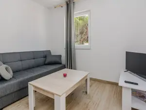 Dieses Apartment im Erdgeschoss befindet sich auf der südlichen Seite der Insel Vir, in einer ruhigen Gegend, nur 120 m vom Strand Luka. Das Apartment ist ideal für 4 Personen.Das Apartment ist aufgeteilt in ein Wohnzimmer, eine voll ausgestattete Küche, zwei Schlafzimmern (eines mit Doppelbett und eines mit zwei Einzelbetten) und ein Badezimmer mit Dusche. Zur Wohnung gehört eine überdachte Terrasse (8 m²) mit Tisch und Stühlen.