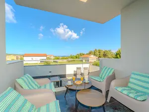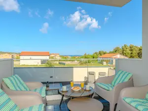 Dieses Apartment befindet sich im Erdgeschoss Stock in einer ruhigen Lage der Insel Vir namens Smratina und ist ideal für 2-4 Personen.Das Apartment ist aufgeteilt in ein Wohnzimmer, eine voll ausgestattete Küche, ein Schlafzimmer mit Doppelbett und ein Badezimmer mit Dusche. Das Wohnzimmer hat ein Schlafsofa für zwei Personen. Zur Wohnung gehört eine überdachte Terrasse (5 m²) mit seitlichem Meerblick und Tisch und Stühlen.