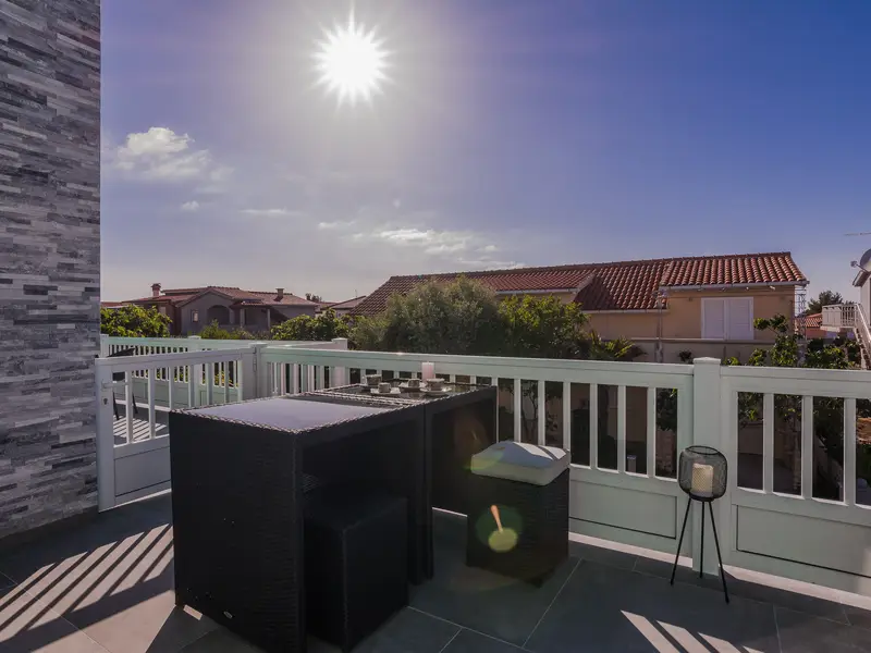 Diese moderne Studio-Apartment für 2 Personen befindet sich in einer ruhigen Gegend der Insel Vir namens Bobovik.Die 20m2 Wohnung im ersten Stock des Hauses teilt sich auf einem Wohn- und Schlafbereich mit ein Einzelbett und Schlafsofa für eine Person, Küche und Badezimmer mit Dusche. Das Wohnzimmer öffnet sich auf einen 6m2 Balkon mit Tisch und Stühlen. Klimaanlage, Sat-TV, Parkplatz auf dem Grundstück und Grill im Innenhof stehen Ihnen zur Verfügung und ohne Aufpreis. Geschäfte, Restaurants und das Zentrum von Vir sind nur wenige Gehminuten entfernt. Der Kieselstrand Bobovik ist nur 250 Meter vom Haus entfernt.