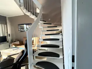 Über die stilvolle Wendeltreppe gelangen Sie in den offen gestalteten Schlaf- und Relaxbereich. Hier erwartet Sie ein gemütliches Daybed zum Entspannen, Lesen oder für Filmabende auf dem großen Flachbildfernseher mit Soundsystem. Wer aktiv bleiben möchte, nutzt das bereitliegende Hantelset.