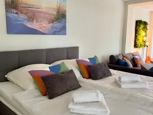 Herzlich Willkommen im NEUEN Apartment "Strandstudio 19" in der eleganten Villa Frigga, direkt an der Strandpromenade von Binz auf der Insel Rügen! Auf großzügigen 52 m² erwartet dich ein stilvoll & modern eingerichtetes Apartment in erster Reihe zum Meer – ideal für Paare, Familien oder Freunde, die eine erholsame Auszeit suchen.