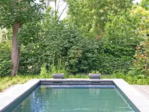 Ein besonderes Highlight ist der großzügige Garten. Auf der eingezäunten Terrasse genießen Sie ungestörte Stunden im Grünen – auch Ihr Hund hat hier sicheren Auslauf. Seit 2020 steht Ihnen zusätzlich ein privater Swimmingpool zur Verfügung. Ziehen Sie morgens ein paar Bahnen oder lassen Sie einfach die Füße im Wasser baumeln. Eine Außendusche sorgt für hygienischen Komfort.
