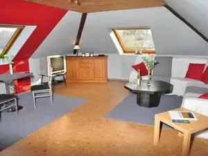 Die Ferienwohnung Eiderblick befindet in der 1. Etage und hat ca. 70 m² Wohnfläche, bestehend aus: Wohn- Schlafzimmer, 1 Schlafzimmer mit Doppelbett, Küche mit Geschirrspüler, Bad mit Dusche/WC, Gartennutzung mit Grillmöglichkeit, PKW-Stellplatz, Nichtraucher! Saunabenutzung nach Absprache gegen Gebühr.• Ferienwohnung in der 1. Etage, ca. 70 m² Wohnfläche