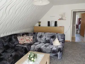 In der 76 qm großen Ferienwohnung im Haus am Gerlachsbach mit eigenem Balkon, 1 Schlafzimmer, Wohn-/ Schlafzimmer (Schrankbetten), Kinderzimmer, Dusche/WC und kompletter Küche werden Sie sich wie zu Hause fühlen. Sat-Fernsehen und Stereoanlage sind selbstverständlich. Für die kleinen Gäste werden Kinderbett und Hochstuhl bereit gehalten. Die Ferienwohnung ist mit Teppichfußboden ausgestattet. Die Ferienwohnung im Haus am Gerlachsbach bietet Platz für 6 Personen und befindet sich im Dachgeschoss und Sie haben einen herrlichen Blick auf Landschaft und Ort.Die Ferienwohnung im Haus am Gerlachsbach bietet Ihnen folgende Raumaufteilung: