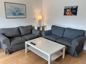 Große Wohnung 2: Ferienwohnung, ca. 70 qm, parterre mit 2 Schlafräumen mit je 2 Betten, Wohnzimmer, große Küche, Bad mit Du/WC und Waschmaschine.