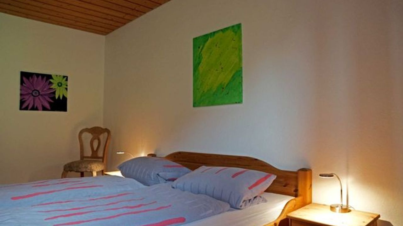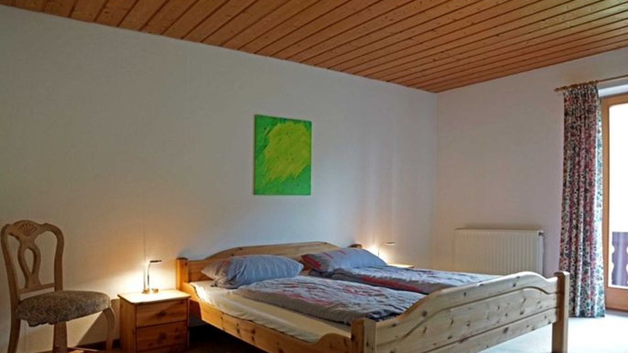 * 1 Schlafzimmer mit Doppelbett und Wendelsteinblick