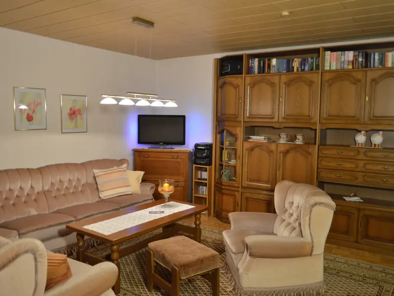 Abgeschlossene, sehr gepflegte und voll ausgestattet Ferienwohnung im 1. OG unseres Zweifamilienhauses mit Wohn-, Ess- und 1 bzw. 2 Schlafzimmern (1 Bett mit elektrisch verstellbarem Kopf- und Fußteil), einer kleinen Küche mit Essplatz sowie einem großen Bad mit WC und behindertenfreundlicher Dusche. Die Wohnung verfügt über einen ca. 15 qm großen und mit Gartenmöbeln ausgestatteten Balkon.Beschreibung der Unterkunft