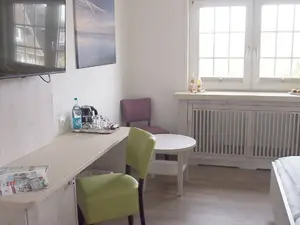 Frühstück inklusive, die Kurabgabe wird extra berechnet. Ein Hund darf nur in den Zimmern Nr. 2, 6, 9, 10, 11, 12, 17 und 18 gegen einen Aufpreis von 6,00 Euro pro Nacht mitgebracht werden. WLAN pro Woche 5,00 Euro extra. Bei Buchung der Suiten 2, 6, 19 und 20 ist der Eintritt ins Norddorf Fitness-Center "Eilun-Fit" im Übernachtungspreis enthalten.Frühstück inklusive. WLAN gegen Gebühr. Die Kurabgabe wird extra berechnet.