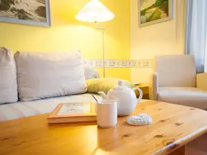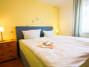 2-Raum-Ferienwohnung für max. 2 Erwachsene - 40 qm im Erdgeschoß Dünenweg 16 - Wohnung "Strandflieder" . Wohnraum: Schlafcouch, Couchtisch, 2 Sessel, TV, Fliesenboden. Schlafraum: Doppelbett mit 2 Nachttischen, Kleiderschrank, Fliesenboden. Küchenzeile im Wohnraum: 4-Platten-E-Herd mit Backofen, Kühlschrank, Spüle, Geschirrspüler, kompl. ausgestattet mit Geschirr und Hausrat, Esstisch mit 4 Stühlen, Fliesenboden. Bad: Dusche, WC, Waschbecken, Ablage, Fliesenboden. WLAN wird kostenlos angeboten - eine Gewähr auf Verfügbarkeit besteht nicht. Die Mitnahme eines Hundes ist gegen Gebühr gestattet - bitte im weiteren Buchungsverlauf dem Warenkorb zufügen.Beschreibung der Unterkunft