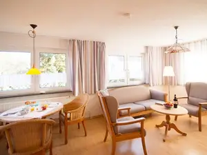 2-Raum-Ferienwohnung für max. 2 Personen - 50 qm - Erdgeschoß im Dünenweg 16 - Wohnung "Grasnelke". Wohnraum: Sofa, Couchtisch, 2 Sessel, TV, Esstisch mit 4 Stühlen, Laminatboden. Schlafraum: Ehebett (2x90x200), 2 Nachttische, Kleiderschrank, Teppichboden. Küche: 4-Platten-Cerankochfeld, Backofen, Geschirrspülmaschine, Spüle, Kühlschrank, komplett ausgestattet mit Geschirr und Hausrat, Fliesenboden. Bad: Dusche, WC, Waschbecken, Ablage, Fliesenboden mit Fußbodenheizung. WLAN wird kostenlos gestellt. Eine Gewähr für Verfügbarkeit besteht nicht. Ein Hund darf gegen Aufpreis von einmalig 30,00 Euro mitreisen.Beschreibung der Unterkunft