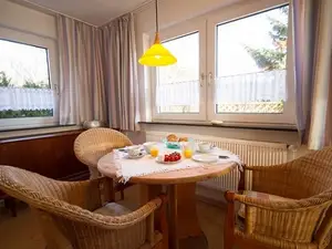 2-Raum-Ferienwohnung für max. 2 Personen - 50 qm - Erdgeschoß im Dünenweg 16 - Wohnung "Grasnelke". Wohnraum: Sofa, Couchtisch, 2 Sessel, TV, Esstisch mit 4 Stühlen, Laminatboden. Schlafraum: Ehebett , 2 Nachttische, Kleiderschrank, Teppichboden. Küche: 4-Platten-Cerankochfeld, Backofen, Geschirrspülmaschine, Spüle, Kühlschrank, komplett ausgestattet mit Geschirr und Hausrat, Fliesenboden. Bad: Dusche, WC, Waschbecken, Ablage, Fliesenboden mit Fußbodenheizung. WLAN wird kostenlos gestellt. Eine Gewähr für Verfügbarkeit besteht nicht. Ein Hund darf gegen Aufpreis von einmalig 30,00 Euro mitreisen.Beschreibung der Unterkunft