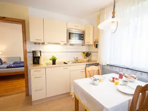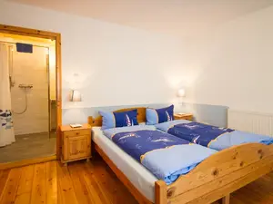 2-Raum-Ferienwohnung für 2 Personen - 30 qm - Erdgeschoß, Dünenweg 16 - Wohnung "Enzian". Wohnraum: Couch, Couchtisch, 1 Sessel, Esstisch mit 2 Stühlen, TV, Laminatfußboden. Küchenzeile im Wohnraum: 4-Platten-Cerankochfeld, Mikrowelle mit Grillfunktion, Geschirrspülmaschine, Kühlschrank, Spüle, komplett ausgestattet mit Geschirr und Hausrat, Fußbodenbelag: Laminat. Schlafraum: Doppelbett , 2 Nachttische, Kleiderschrank, Tisch mit 2 Stühlen, Holzdielenfussboden. Bad: Dusche, WC, Waschbecken, Ablage, Fliesenboden mit Fußbodenheizung. WLAN wird kostenlos gestellt - ein Gewähr für Verfügbarkeit besteht nicht. Ein Hund ist in dieser Wohnung nicht erlaubt.Beschreibung der Unterkunft