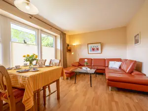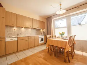 2-Raum-Wohnung für 2 Personen und 1 Kind im Kinderreisebett, 40 qm im Erdgeschoß mit Terrasse. Wohnzimmer mit Couch, Sessel, TV, Fußbodenbelag: Laminat. Küchenzeile mit 4-Platten-Cerankochfeld, Backofen, Spülmaschine, Fußbodenbelag: Fliesen. Schlafzimmer mit Ehebett (2x80x200), ein Nachttisch, Kleiderschrank (im Wohnungsflur), Fußbodenbelag: Laminat. Bad mit Dusche, WC und Waschbecken, Fußbodenbelag: Fliesen. Die Bettwäsche wird kostenlos gestellt, Handtücher gegen Gebühr. Münzwaschmaschine und -trockner im Haus. Ein Hund darf gegen Aufpreis mitreisen.Beschreibung der Unterkunft