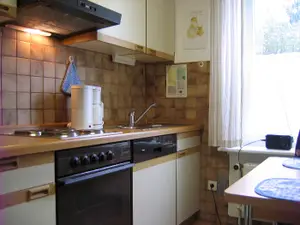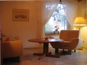 2-Raum-Ferienwohnung für Nichtraucher - 40 qm - Erdgeschoß Wohn-/Schlafraum: Couch, Couchtisch, 2 Sessel, doppelter Schrankklappbett mit Einzelmatratzen 2x80X190, Lattenrost höhenverstellbar, Schrank, TV, Radio, Fliesenboden. Schlafraum: Doppelbett mit Einzelmatratzen (2x90X190), Lattenrost höhenverstellbar, Umbauschränke, Teppichboden. Küche: 4-Platten-E-Herd, Kühlschrank, Spüle, Geschirrsp., Dunstabzug, kompl. ausgestattet mit Geschirr und Hausrat, Esstisch mit 2 Stühlen, Fußbodenbelag: Fliesen. Bad: Dusche m. Schiebetür, WC, Waschbecken, Ablage, Fliesen Flur: Garderobe m. Schuhschrank, Fliesenboden.Beschreibung der Unterkunft