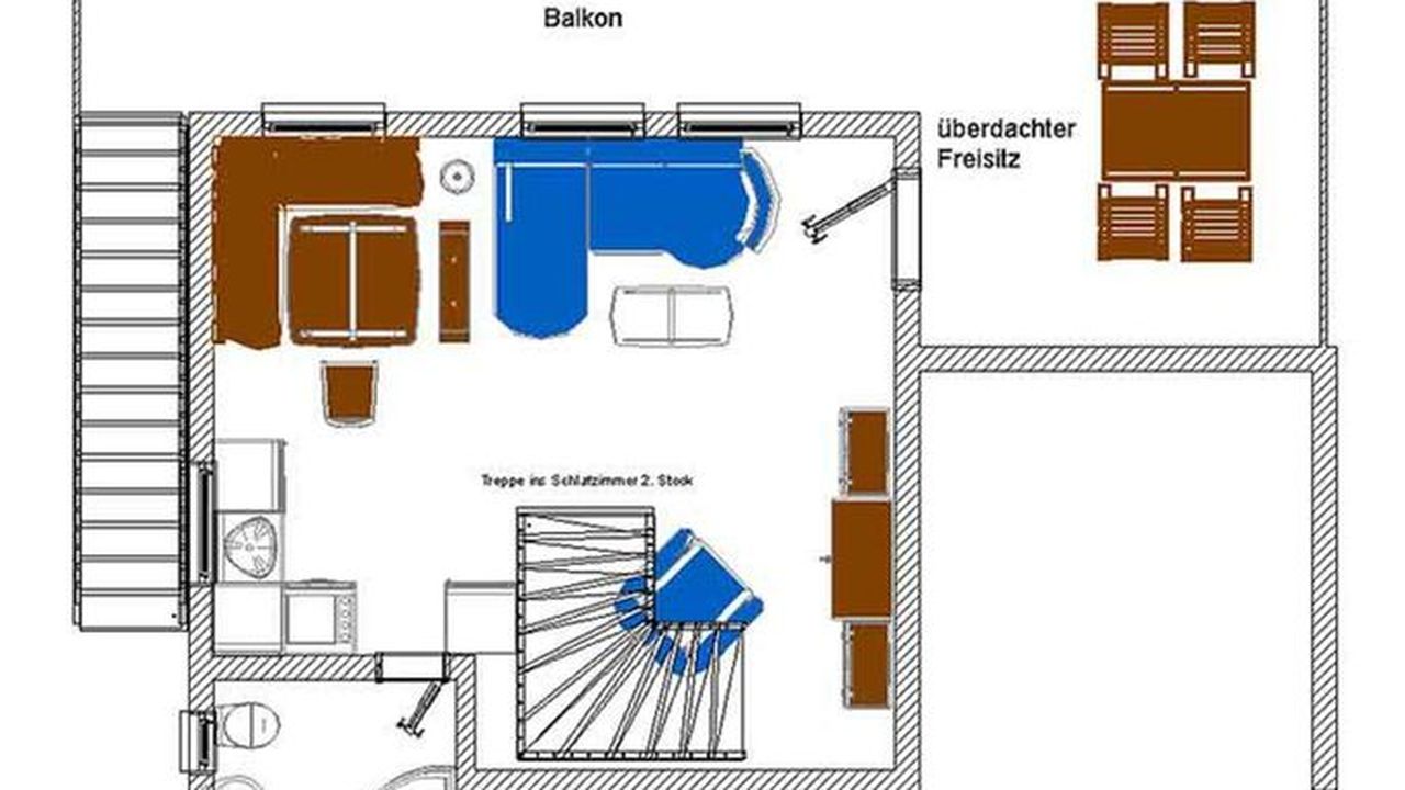 Telefon, SAT-TV (im Schlafzimmer und Wohnzimmer), Internetzugang im Apartment. Großer Freisitz, beide Balkone im Schlaf- und Wohnzimmer sind nach Süden ausgerichtet. Doppelbett im 2. Stock unter dem Dach.