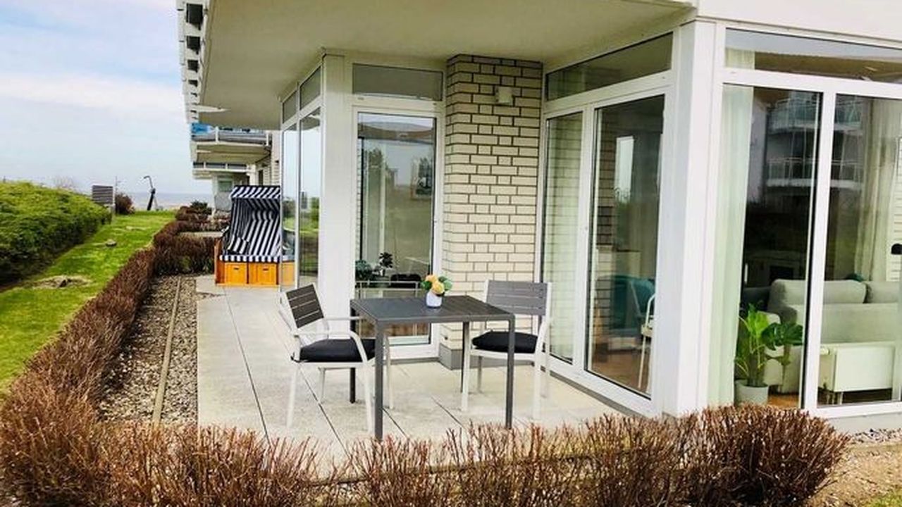 - in der Parterre/Aufzug zur Tiefgarage- möblierte Terrasse (Süd-Westlage) mit Strandkorb (April-Sept.)