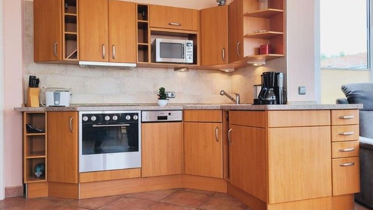 - Küche - Herd mit Backröhre, Mikrowelle, Kühlschrank,
