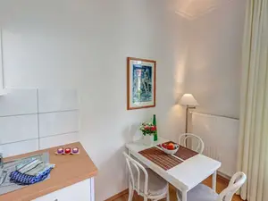 STRANDNAH! Nur ca. 100 m zur Strandpromenade mit BALKON! Gemütliches 1-Zimmer-Apartment mit guter Ausstattung. Geräumiger Wohn-/Schlafraum mit Doppelbett und Sitz-/Sofaecke, Küchenzeile mit Essplatz, Duschbad, kleiner Vorflur, Balkon. Die Wohnung verfügt über einen Pkw-Stellplatz . Abstellraum für Fahrräder und ähnliches ist vorhanden. Eine Sauna in der Villa Germania kann kostenpflichtig genutzt werden. Vom Haus aus können Sie das Ortszentrum und die bekannte Ahlbecker Seebrücke in ca. 3 bzw. 5 Minuten zu Fuß erreichen.Das gemütliche 1-Zimmer-Appartement Nr. 4 befindet sich im Erdgeschoss der Villa Ostseewarte. Es verfügt über einen geräumigen Wohn- und Schlafraum mit einem Doppelbett, einer gemütlichen Sitzgruppe sowie einem Essplatz. Die integrierte Küchenzeile ist voll ausgestattetet mit Spülmaschine, Kaffeemaschine, Wasserkocher, Toaster und Mikrowelle. Das Bad verfügt über Dusche und WC. Zum Appartement gehört darüber hinaus ein Balkon. Ein Pkw-Stellplatz steht Ihnen auf dem Grundstück kostenfrei zur Verfügung und Ihre Fahrräder können Sie ebenfalls auf dem Grundstück in einem separaten Abstellraum unterbringen. Alle Wohnungen in der Villa Ostseewarte haben passwortgeschütztem DSL-WLAN Internetzugang (gerätegebunden, Euro 1,50 pro Tag und Gerät). Eine Waschmaschine können Sie gegen Gebühr gern nutzen (Münzgerät).
