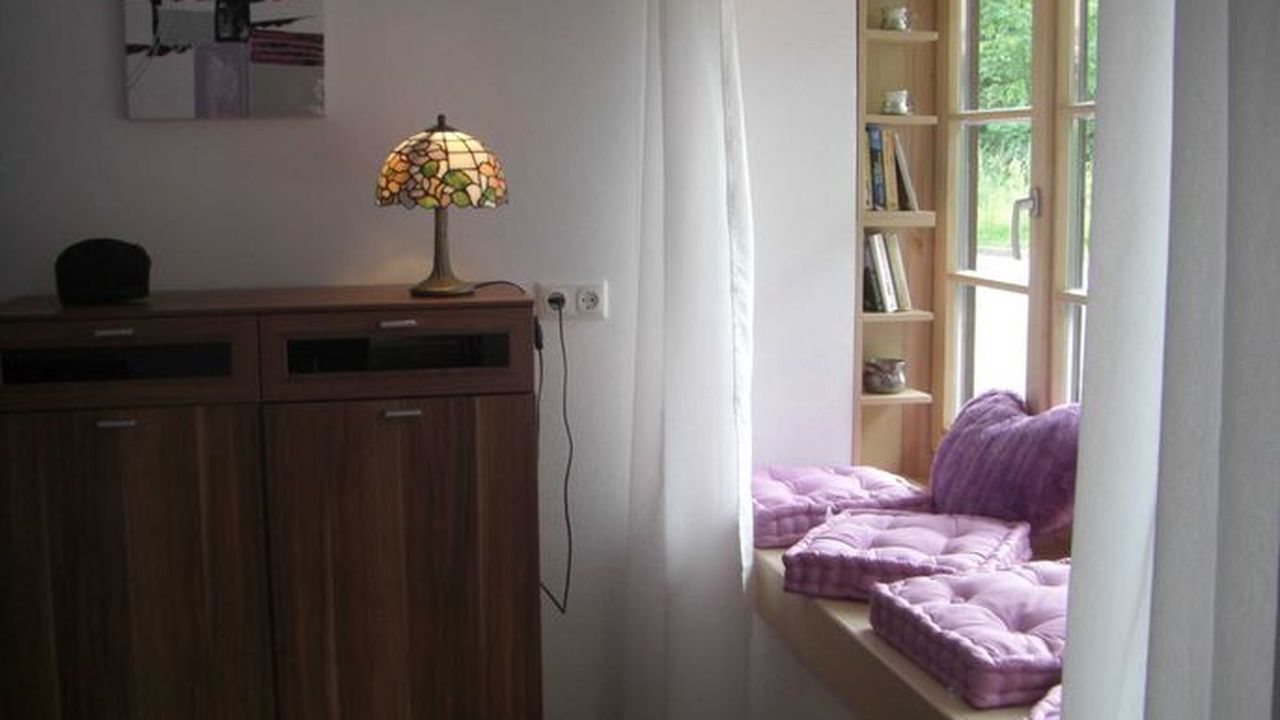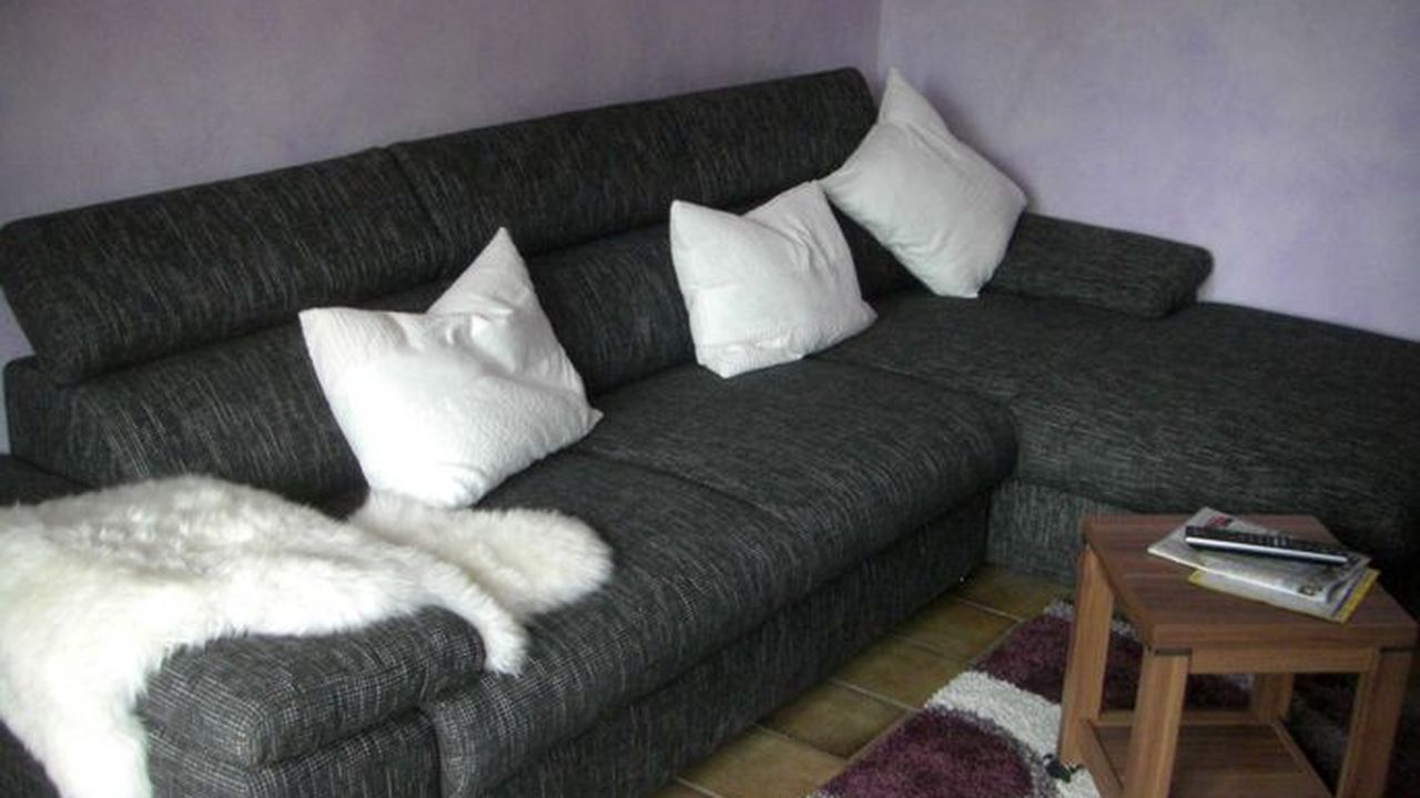 Unsere Ferienwohnung ist für 2 bis 5 Personen ausgelegt und befindet sich im 1. Stock. Im Schlafzimmer befindet sich ein Doppelbett 1,80x2,00m. Im Kinderzimmer ein Etagenbett 1,95x0,90 m und eine weitere Aufbettung ist im Wohnbereich möglich. Der Fußbodenbelag ist Laminat. Es handelt sich um eine reine Nichtraucherwohnung..Der großflächige Balkon erstreckt sich über die Süd- und Westseite des Hauses.