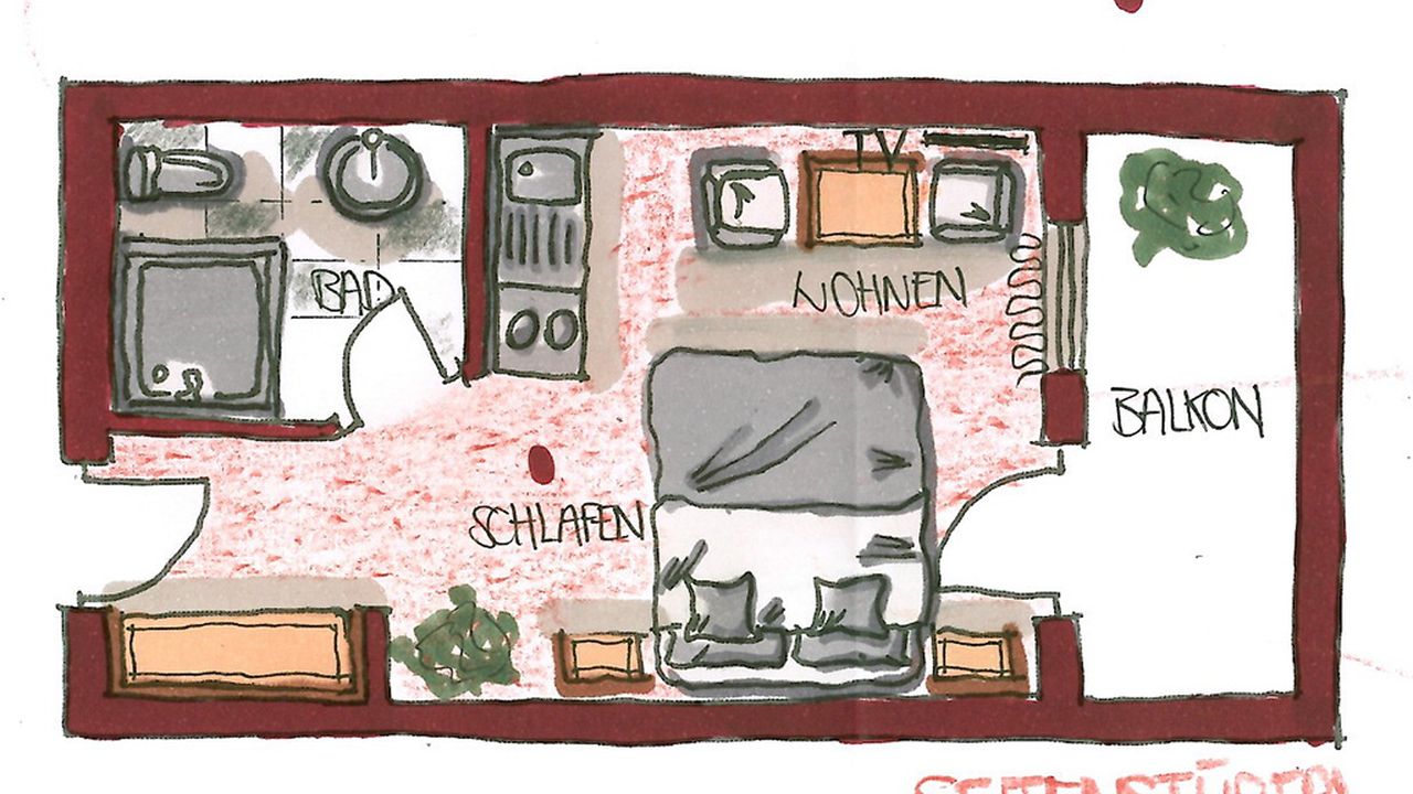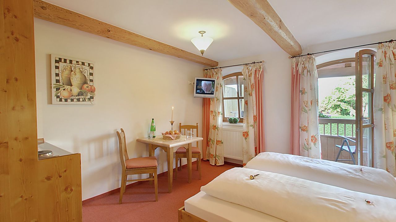 Ca. 25 qm für 2 Pers., kombiniertes Wohn-/Schlafzimmer, Küche, Dusche, WC, Sat-TV, Durchwahltelefon, Radiowecker, im Nebengebäude (mit Austrags-Suite kombinierbar).Beschreibung der Unterkunft