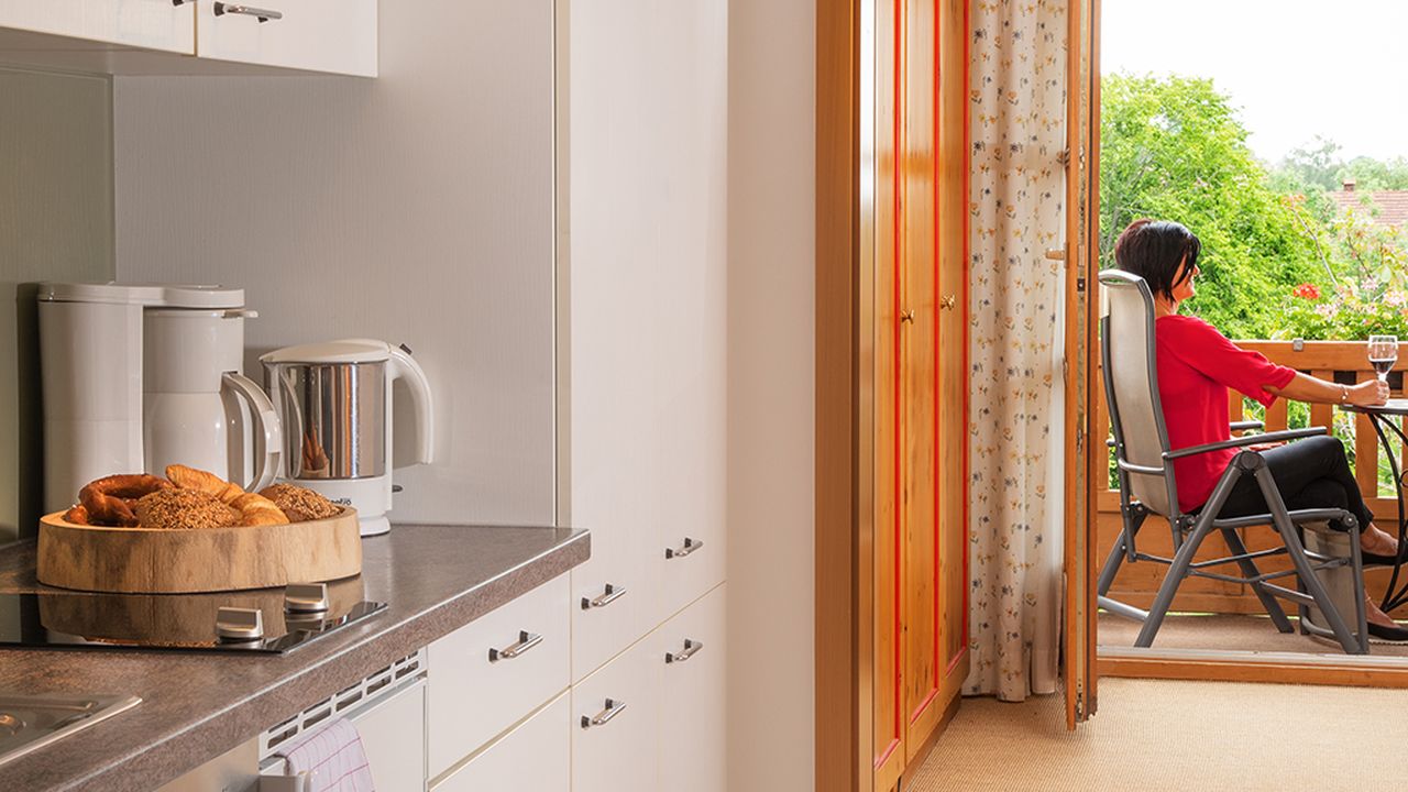 Ca. 30 qm für 2 Pers., komb. Wohn-/Schlafzimmer, Küche, Dusche, WC, Sat-TV. Inkl. Arterhof-Thermenland, 2017 neu renoviertBeschreibung der Unterkunft