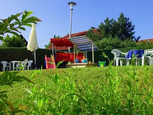 Die Ferienwohnung befindet sich im Erdgeschoss unseres Hauses und mit einer Größe von ca. 58 qm für 2-4 Personen verfügt sie über je 1 Wohnzimmer, Schlafzimmer, Diele, Küche und Bad:Das Wohnzimmer, an der sich die teilweise überdachte große Terrasse anschließt, ist mit SAT-TV sowie einem DVD- und CD-Player/Radio/Telefon (ins deutsche Festnetz kostenlos) und zusätzlicher Schlafgelegenheit ausgestattet.