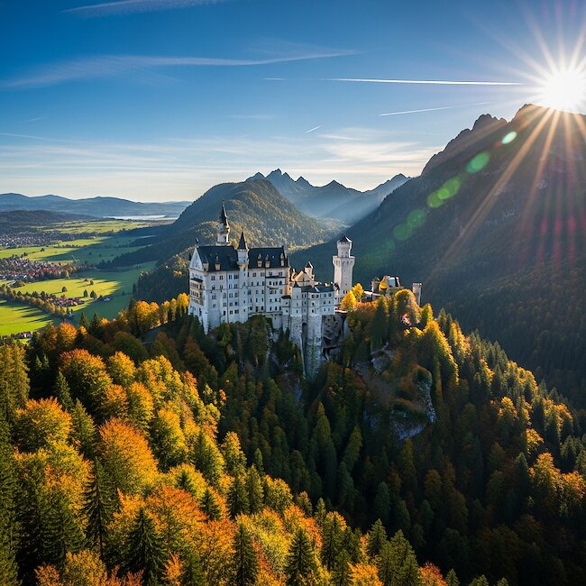 Im Ostallgäu bei Füssen erwarten Sie die berühmten Schlösser Neuschwanstein und Hohenschwangau, die man unbedingt besuchen sollte. Die Deutsche Alpenstraße mit den beeindruckenden Serpentinen führt Sie zu wunderschön gelegenen Ferienhäusern.