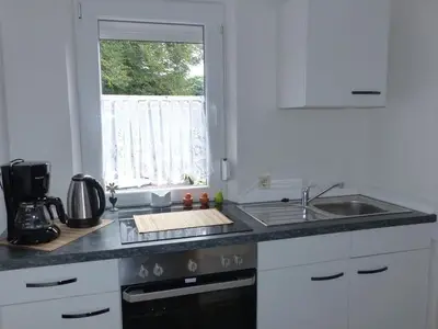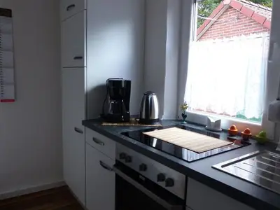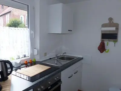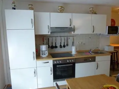 Hauptansicht Wohnzimmer Wohnzimmer Küche / Küchenzeile Küche / Küchenzeile Schlafzimmer Schlafzimmer Ferienwohnung für 2 Personen (50 m²) in Krummhörn 8/10 Küche / Küchenzeile Küche / Küchenzeile