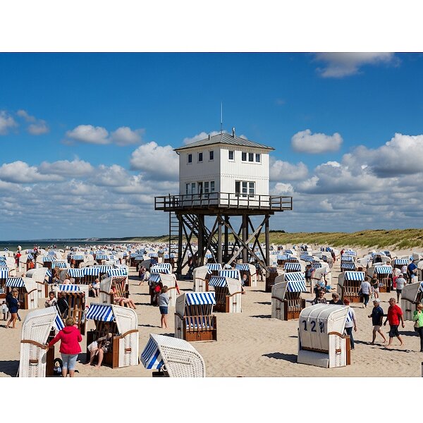 Häuser auf Pfählen, kilometerlanger, flach abfallender Strand, einzigartige Dünenlandschaft, Strandsegler – All das gepaart mit einer unglaublichen Naturkulisse inspirierte schon unzählige Künstler, Geschichtenerzähler und Filmemacher, das beschauliche St. Peter-Ording zu besuchen. Der Strand ist die eine attraktive Seite des Nordseeheil- und Schwefelbads St. Peter-Ording. An schönen Tagen kommen hier bis zu 20.000 Badegäste. Dabei findet sind trotz Andrang immer ein Plätzchen für weitere Gäste. Die Aufteilung des Strandes ist einfach gehalten. Im Süden befindet sich der Textilstrand, in der Mitte die Surfer und im Norden die Freie-Körper-Kultur. Für Kulturinteressierte bieten sich Ausflüge zum Böhler Leuchtturm, nach Westerhever mit Leuchtturm und Sandbank, zum Westüstenpark & Robbarium, zum Kinderspielhaus, zum Eidersperrwerk oder nach Tönning mit dem Multimar-Wattforum an.