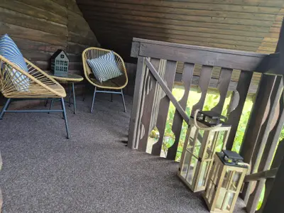 Hausansicht Hausansicht. Sitzgelegenheit, Garten Haus / Garten Haus Ansicht Balkon 1 Stock Kleiner Balkon Essbereich Wohnzimmer Wohnzimmer