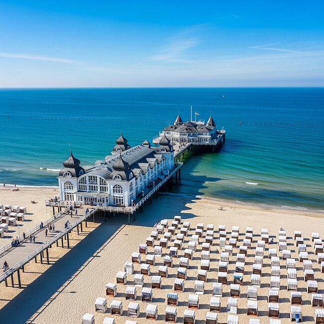 Auf Rügens Halbinsel Mönchgut liegt Sellin eingebettet zwischen der Ostsee und dem Selliner See in eine malerische Küstenlandschaft. Wie für die Ostseebäder Mecklenburg-Vorpommern typisch ist auch Sellin von einem historischen Ortskern gezeichnet, wo aufwendig sanierte Häuser im Bäderstil die geschichtliche Entwicklung Sellins vom Fischerdorf zum Ostseebad veranschaulichen. Hier können Sie sich in zahlreichen Cafés und Restaurants niederlassen und in kleinen Boutiquen auf Shoppingtour gehen.